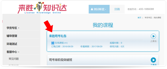 Step 1 请至来胜.知识达首页 http://www.lawyerstep.com/Studymall/ibrain/,点击右上方的【登录】,输入帐号、密码,进入「我的课程」。