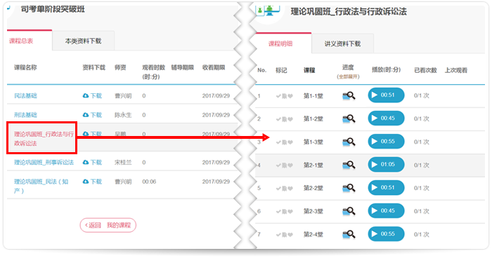 Step 2 点击【上课去】即可看到「课程总表」,选择科目就可以看到「课程明细」列表。
